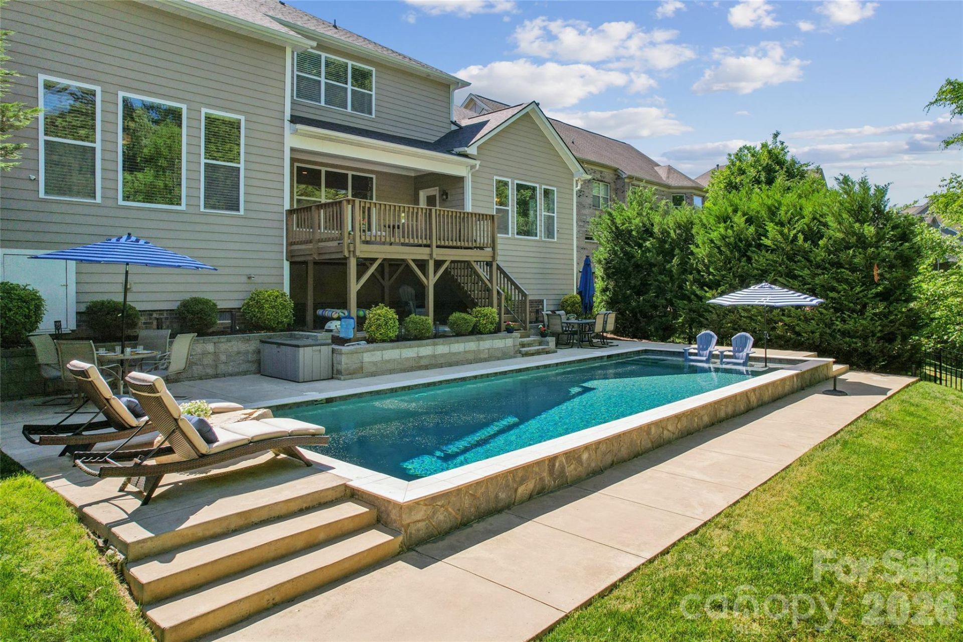 Coming Soon in Concord? and this one might just ruin every other backyard you tour after it!Welcome to 785 Barossa Valley Drive?where classic curb appeal meets a backyard that feels like your own private resort. From the moment you arrive, you'll notice the timeless exterior, and the oversized driveway leading to a spacious three-car garage makes sure there's room for everyone (and everything). But don't linger too long? because the real showstopper is waiting out back.Let's set the scene: a sleek, in-ground gunite saltwater pool surrounded by expansive patio space, perfectly positioned for everything from quiet morning coffee to full-on summer gatherings. Lounge chairs? Check. Dining area? Of course. A covered deck above with a mounted TV? Yes, game days just found their new home. And with a tree-lined backdrop, you get privacy that feels peaceful, not isolated.Inside, the home keeps the momentum going. Rich hardwood floors span the main level, leading you into a bright, open kitchen featuring quartz countertops, a massive island, stainless steel appliances, and plenty of space for everyone to gather (because they will). Just off the kitchen, the dining area is framed by large windows overlooking that incredible backyard?fair warning, it's distracting in the best way.The living room brings warmth and function together with custom built-ins and a cozy fireplace, creating the perfect spot to unwind after a long day.And just when you think it couldn't get better...the primary suite is conveniently located on the main level, offering both privacy and ease of living. The oversized closet is truly something special, complete with its very own washer and dryer for next-level convenience (yes, really).Upstairs is where this home really starts to flex. You'll find not one, but TWO bonus spaces?one ideal as a media or movie room (hello, binge nights) and another that could easily transform into a game room, playroom, or second living area depending on your vibe.One of the bedrooms even enjoys its own private bathroom...perfect for guests, teens, or anyone who appreciates a little extra privacy. The second of two laundry rooms is conveniently located upstairs making everyday living just a bit easier.And then there's the hidden gem? a special flex space tucked off one of the bedrooms. Think cozy sitting room, private office, reading nook, nursery, or even a quiet escape when the rest of the house gets a little too lively. It's one of those spaces you didn't know you needed, but won't want to live without!We could keep going? but where's the fun in that? Stay tuned?this one is worth the wait.
